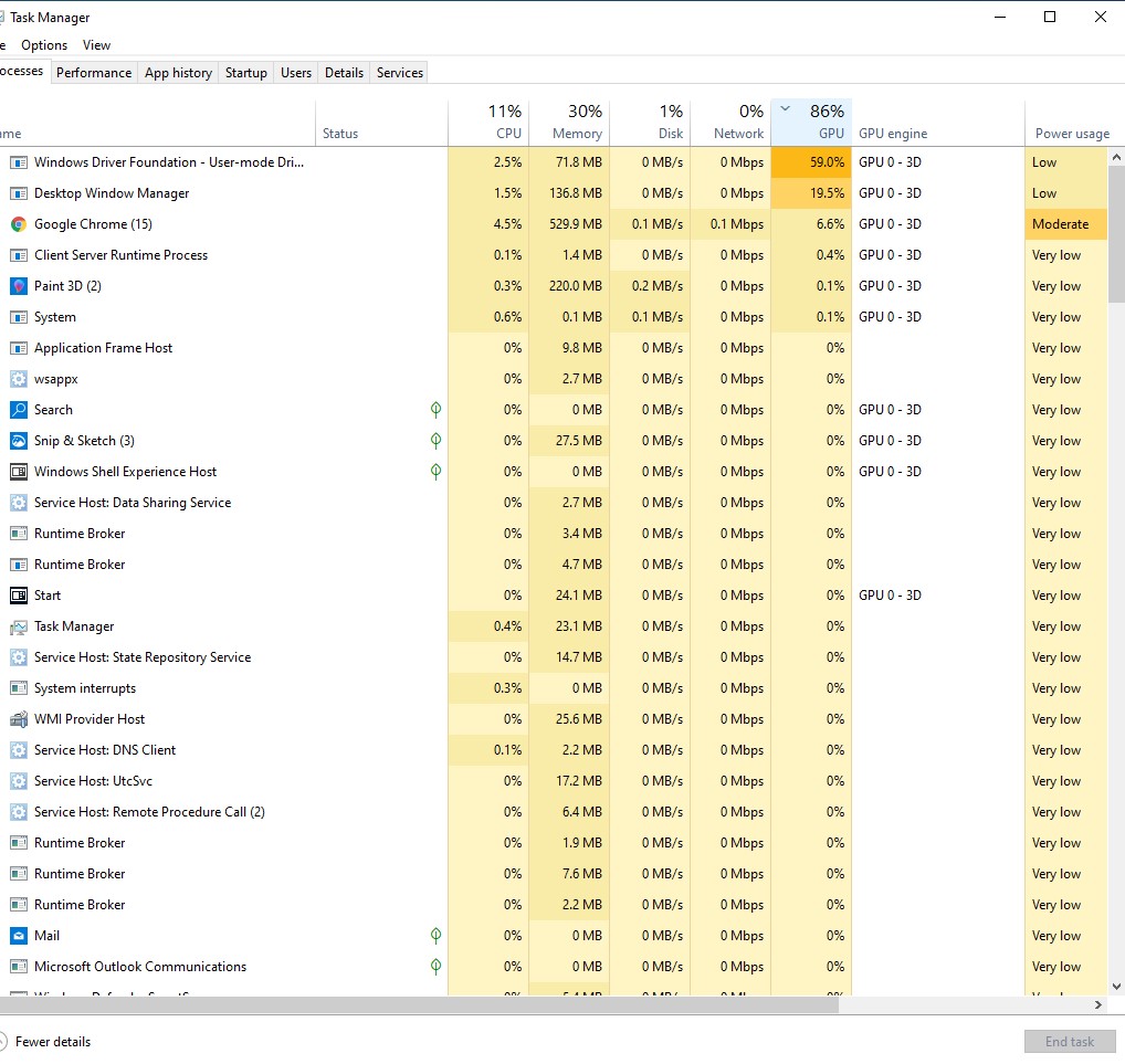You can see the current Task manager where the GPU usage on WUDFHost is too high.